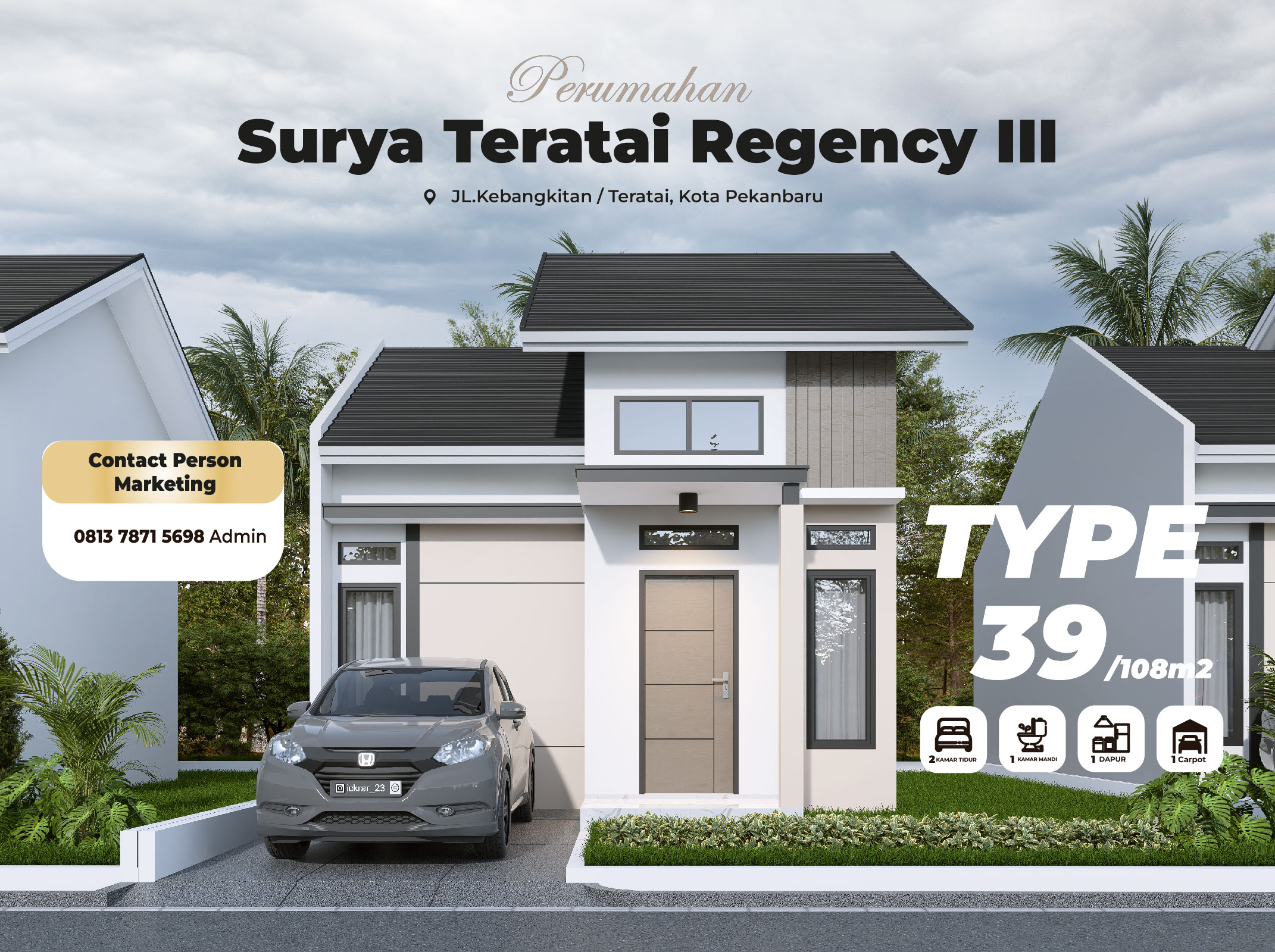 PERUMAHAN INI TERLETAK DI JALAN KEBANGKITAN , KOTA PEKANBARU, TERSEDIA TYPE 39/108M2. LOKASI SANGAT BAGUS DAN STRATEGIS,AKSES JALAN YANG BAIK DAN LANCAR HANYA 15 MENIT KEPUSAT KOTA, DEKAT DENGAN RUMAH SAKIT SANSANI, SEKOLAH, PERTOKOAN